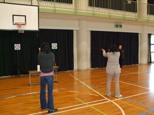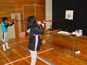 矢を5本吹いて的に当たった箇所の合計得点を競います。