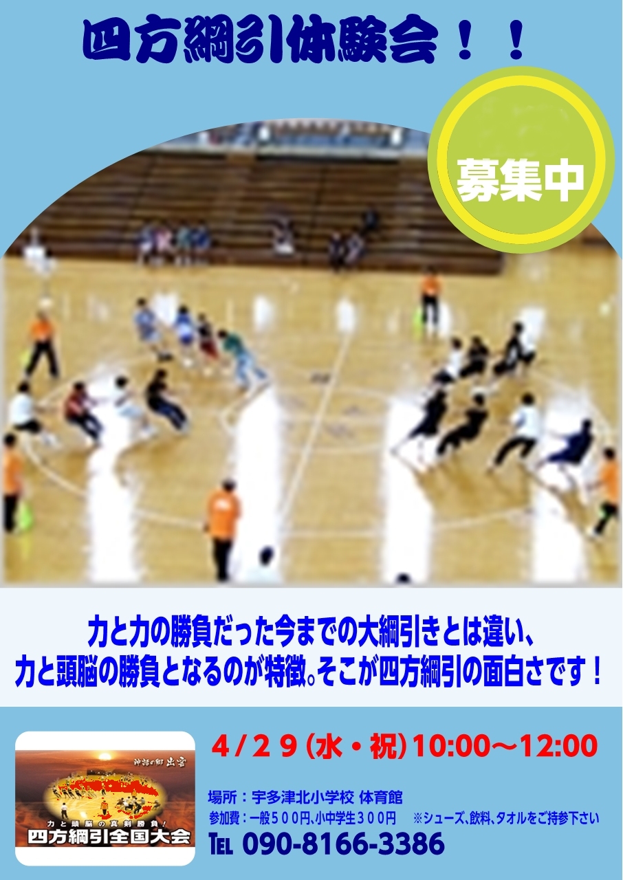 四方綱引 全国大会出場者大募集! いきなり全国大会出場です!